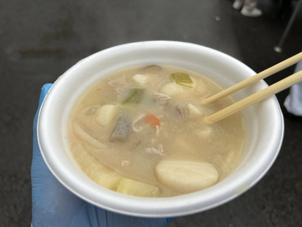 今回は所属町会ということで、昨晩の米研ぎや豚汁のの材料切りから餅つき後の片付けまで参加しました。